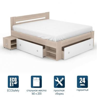 Двуспальная кровать Beneli СТЕЛЛА, с ящиком для белья, Дуб сонома/Белый, 160х200 см, 1 шт.